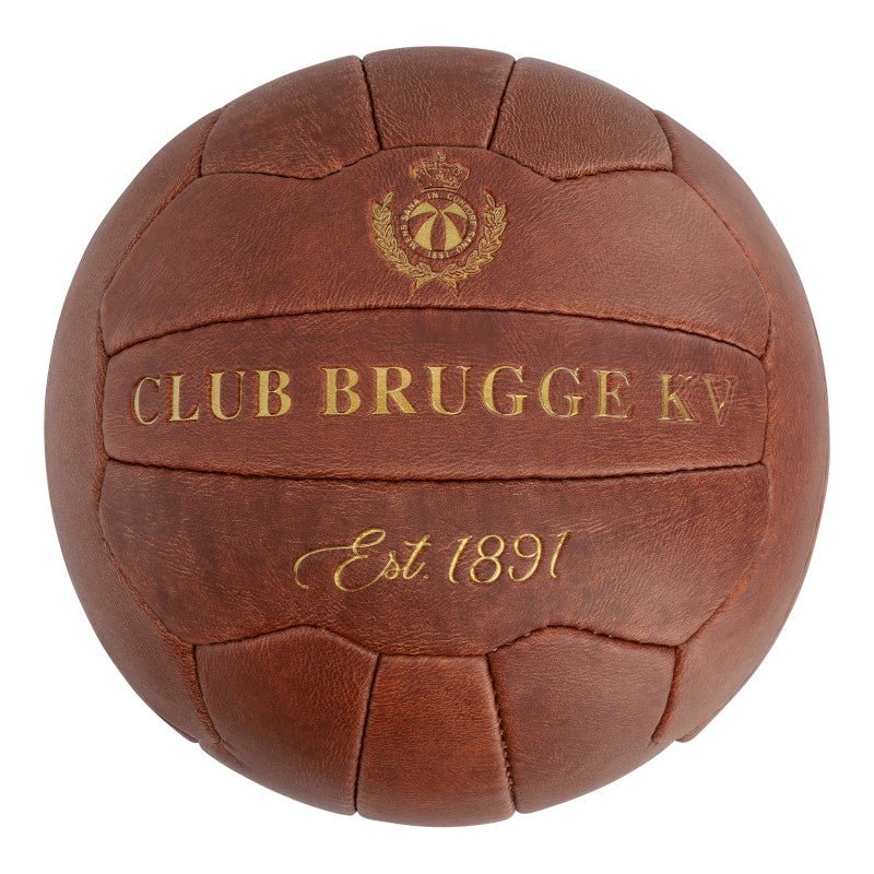 Deze bruine Club Brugge retro voetbal is een originele leren voetbal. De retro bal is gebaseerd op de voetballen waar in het verleden mee werd gevoetbald. De Club Brugge retro bal is voorzien van retro touwtje en in het goud zijn het clublogo en de naam van Club Brugge op de voetbal aangebracht. Ideaal voor de echte retro liefhebber of fan van Club Brugge